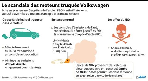 | Schéma sur le scandale des moteurs diesel truqués du constructeur allemand Volkswagen. |