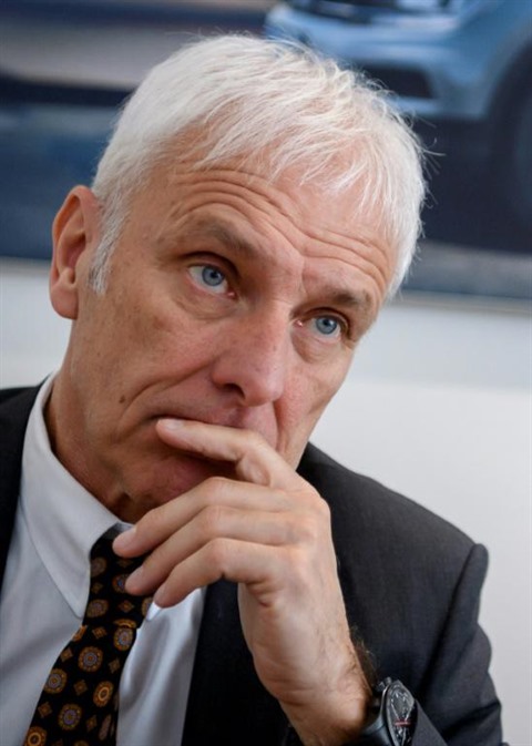 | Matthias Müller accorde un entretien au Salon de l'automobile de Genève, le 7 mars. |