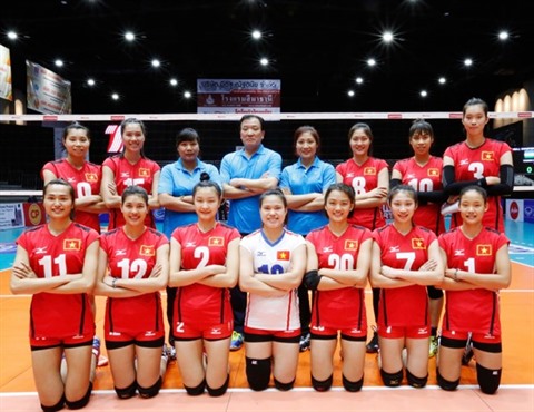 | L'équipe vietnamienne U23 lors du tournoi U23 de volley-ball féminin d'Asie tenu en Thaïlande. |