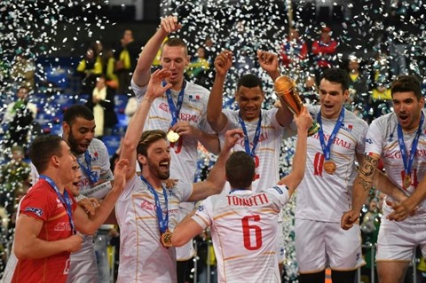| La victoire des Blues porte la marque d'Earvin Ngapeth (3e gauche), meilleur joueur du tournoi. |