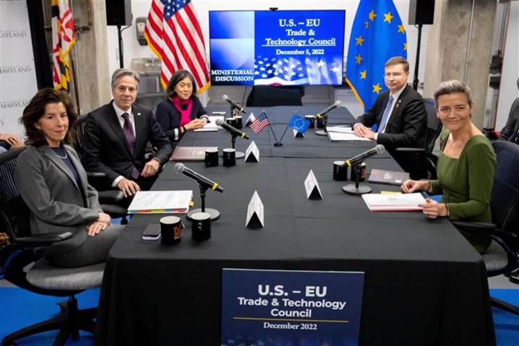 Les discussions ont rassemblé le secrétaire d'État, Antony Blinken, la ministre du Commerce, Gina Raimondo, et l'ambassadrice au Commerce Katherine Tai côté américain, et côté européen, les commissaires Valdis Dombrovskis, en charge du Commerce, et Margrethe Vestager, pour la Concurrence.