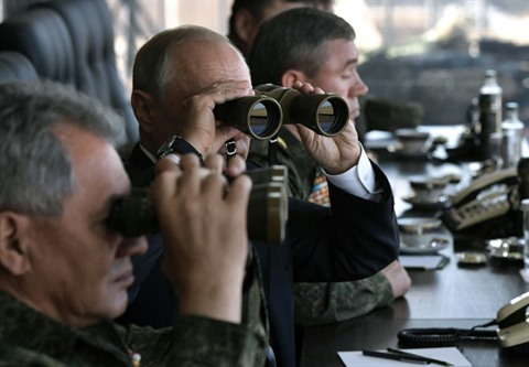 | Le président russe Vladimir Poutine assistant aux exercices Vostok-2018, organisés en Extrême-Orient russe, le 13 septembre. |