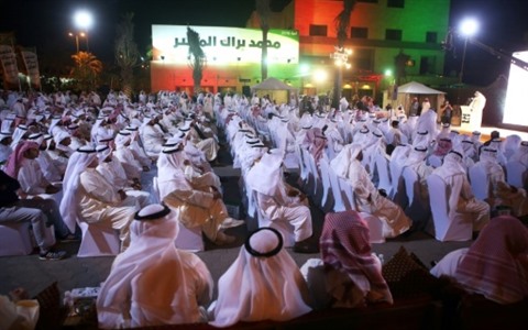 | Des Koweitiens rassemblés pour un meeting politique de l'ancien Premier minsitre et candidat Mohammed al-Mutair, le 20 novembre 2016 à Koweit city. |