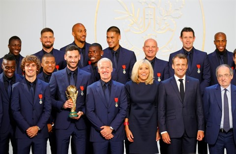 | Les joueurs français reçoivent la Légion d'honneur à l'Élysée le 4 juin. |