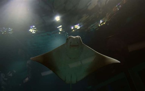 L'immensité d'eau dans un camaïeu de bleus et un éclairage réduit donnent l'impression de se déplacer au fond de la mer, le long des couloirs où se succèdent 28 aquariums aux parois en acrylique.