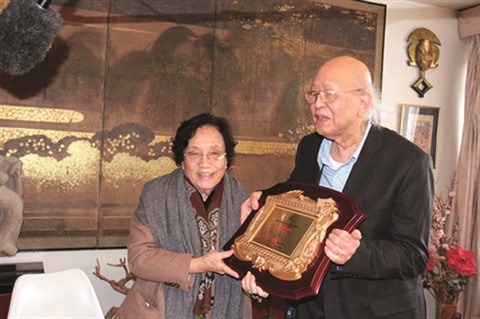 | L’ancienne vice-présidente de la République, Nguyên Thi Binh, remet le prix Phan Châu Trinh 2012 au Professeur Lê Thành Khôi. |