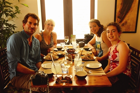 Ce matin, Stéphane, Kirsten, Elise et Anne Messier, tous Canadiens, ont rendez-vous à HCC pour un cours de cuisine vietnamienne. La journée commence par la découverte du marché local. Entre les bonnes mains de la chef cuisinière Phan Thi Duyên, ils font des courses au marché Châu Long, situé près du charmant lac Truc Bach, à quelques encablures du HCC. Devant les étaux de produits frais et variés, la famille canadienne est emballée par un empire gustatif enivrant. «Ici, tout est super frais. Il y a beaucoup de légumes verts. J’ai également vu de la viande fraîche !», partage Anne.