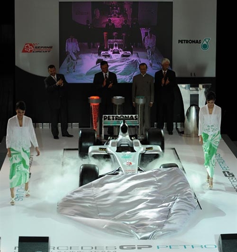 | La Mercedes F1 a été dévoilée lors de circuit de Kuala Lumpu, en 2010. |