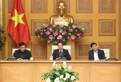 | Le vice-Premier ministre Vu Duc Dam (centre), chef du Comité de pilotage national pour la prévention et la lutte contre la maladie respiratoire aiguë causée par le nouveau coronavirus 2019. |