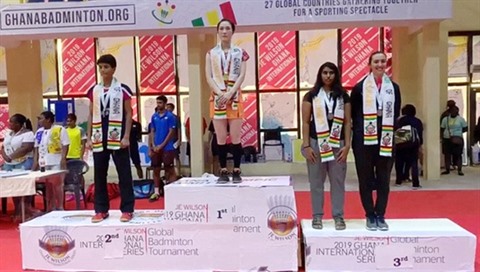 | Vu Thi Trang sur la plus haute marche du podium du tournoi de badminton JE Wilson International Series. |