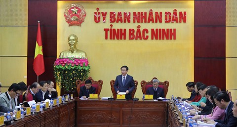 | Le vice-Premier ministre Vuong Dinh Huê (debout) lors de la séance de travail avec les autorités de la province de Bac Ninh (Nord), le 25 janvier. |