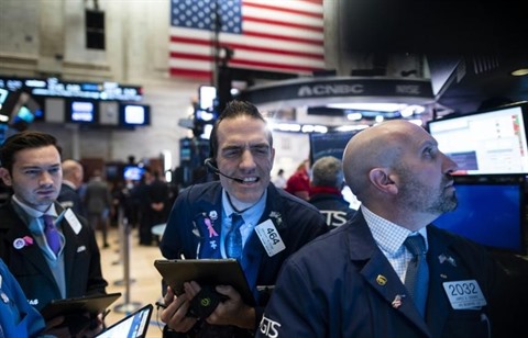 | Des courtiers au New York Stock Exchange à Wall Street. |