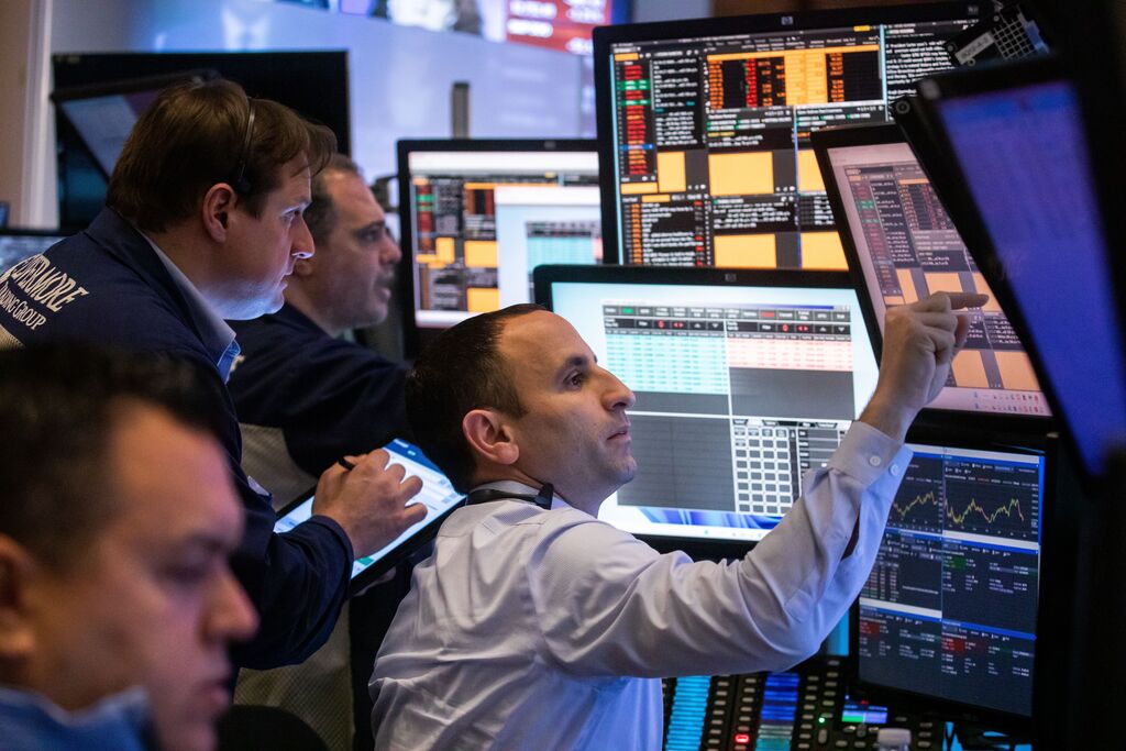 | Les courtiers dans le parquet de la Bourse de New York. |