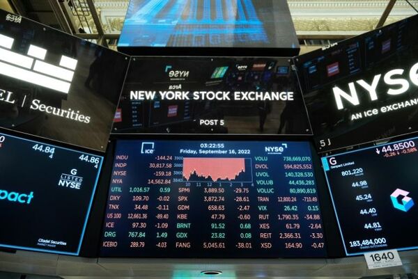 Les investisseurs ont ainsi continué de réagir à la communication de la Fed, qui a relevé son taux de 0,75 point de pourcentage mercredi 21 septembre mais aussi signalé qu'elle s'attendait à ce qu'il monte plus haut, et pour plus longtemps, que ne le prévoyait Wall Street.