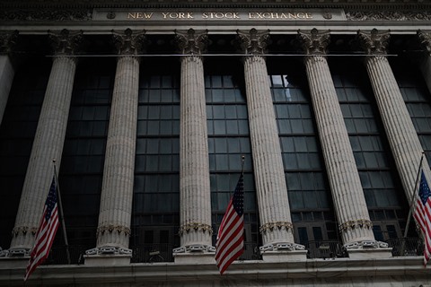 | Des drapeaux américains flottent à l'extérieur du New York Stock Exchange (NYSE) à Wall Street (New York), le 20 juillet. |