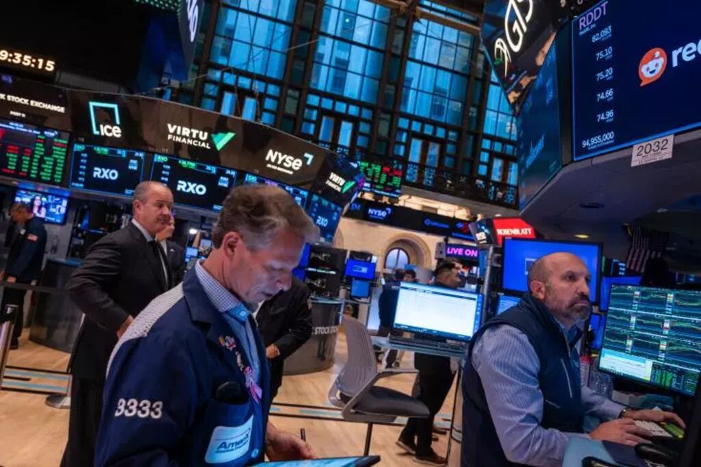 | Des opérateurs du New York Stock Exchange. |