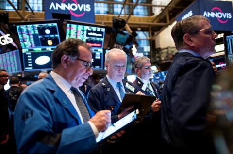 | Des courtiers au New York Stock Exchange à Wall Street. |