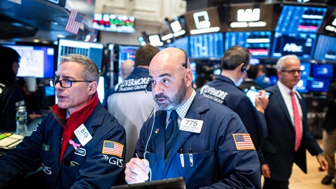 | Des courtiers sur le New York Stock Exchange à Wall Street. |