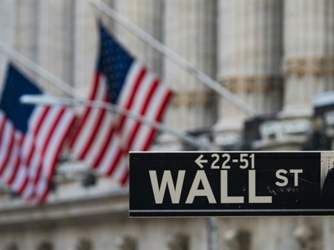 | Des drapeaux flottent devant le New York Stock Exchange (NYSE) à Wall Street (New York). |