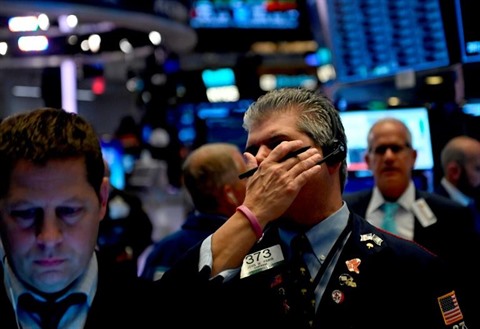 | Des courtiers sur le New York Stock Exchange à Wall Street, fragilisée le 31 octobre par des indicateurs décevants. |