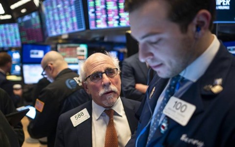 | Des courtiers sur le New York Stock Exchange à Wall Street. |