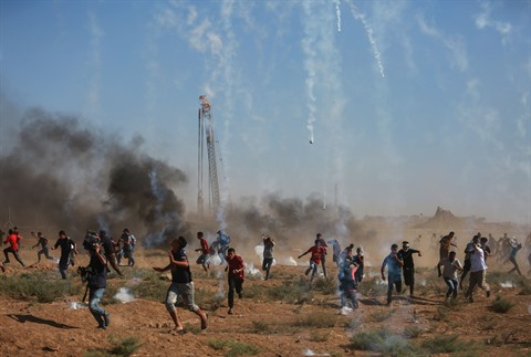 | Des manifestants palestiniens lors des affrontements dans la bande de Gaza. |