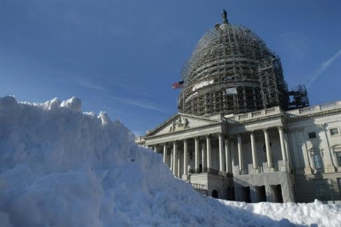 | De la neige devant le Capitole, le 21 janvier à Washington. |