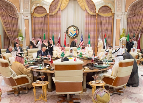 | Séance d'ouverture du Sommet du Conseil de coopération du Golfe (GCC), le 21 mai à Ryad, en Arabie saoudite. |