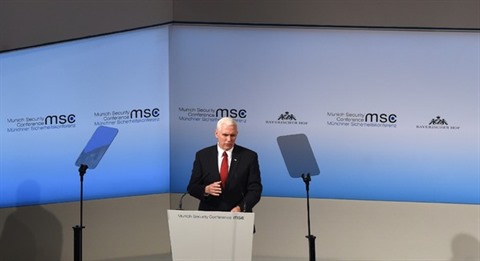 | Le vice-président américain Mike Pence lors de la conférence de presse sur la sécurité à Munich, en Allemagne, le 18 février 2017. Photo : AFP/VNA/CVN |