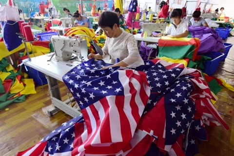 | Un drapeau américain fabriqué dans une usine dans l'est de la Chine. |
