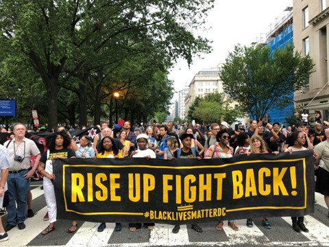 | Des manifestants défilent, le 12 août 2018 à Washington. |