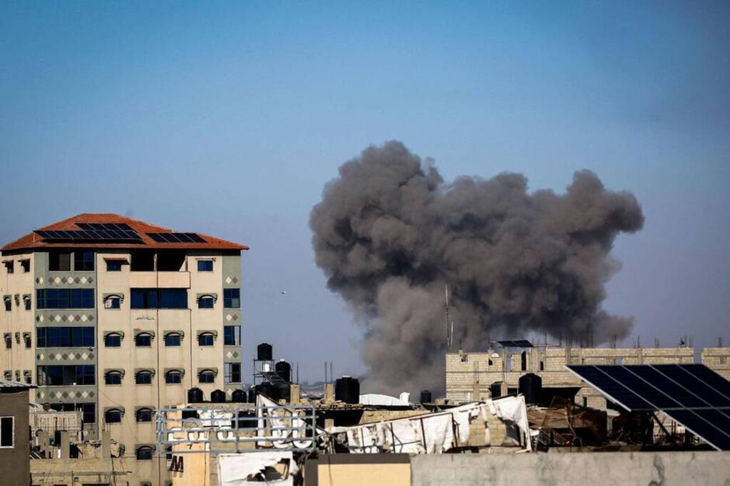 | De la fumée s'échappe de frappes israéliennes à Rafah, dans le Sud de la bande de Gaza, le 7 mai 2024. |