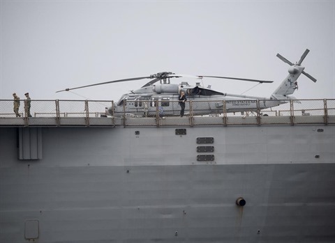 | Le Sikorsky SH-60 Seahawk est un hélicoptère multirôle capable d'être déployé à bord d'un navire. |
