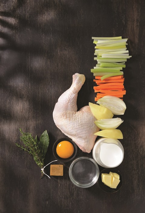 - 3e étape : retirer les morceaux de poulet et les légumes, garder au chaud.