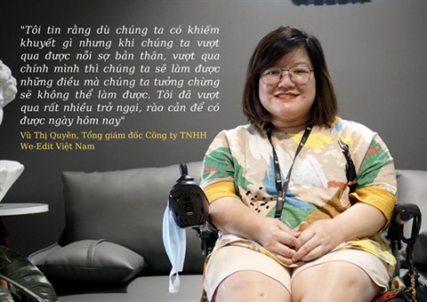 Vu Thi Quyên, directrice générale de We-Edit Vietnam, et ses confrères sont toujours soucieux de chercher des positions et travaux convenant à chaque sorte de handicap.