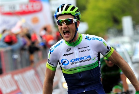| Le Néerlandais Pieter Weening lors de la 9e étape du Tour d'Italie le 18 mai 2014. |
