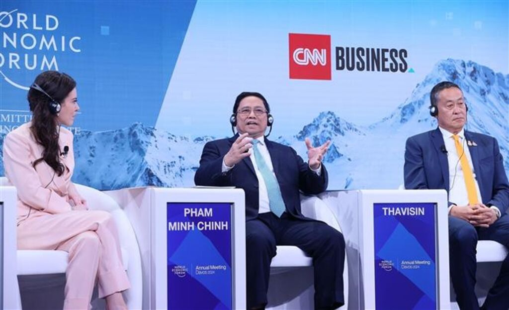 | Le Premier ministre Pham Minh Chinh (centre) s'exprime lors du débat sur l'ASEAN à Davos (Suisse), le 17 janvier. |