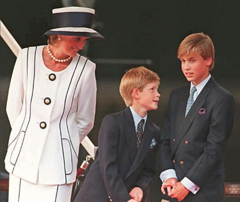 | La princesse Diana et ses enfants, le prince William et le prince Harry, en 1995, à Londres |