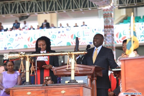 | Le président William Ruto (droite) prête serment lors de la cérémonie de prestation de serment à Nairobi, au Kenya, le 13 septembre. |