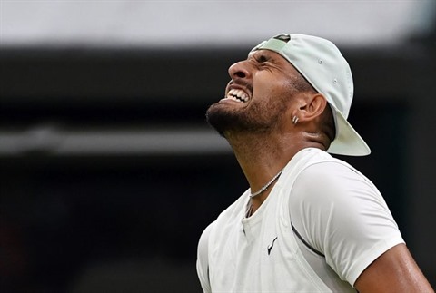 | L'Australien Nick Kyrgios vainqueur du Grec Stefanos Tsitsipas à Wimbledon, le 2 juillet. |