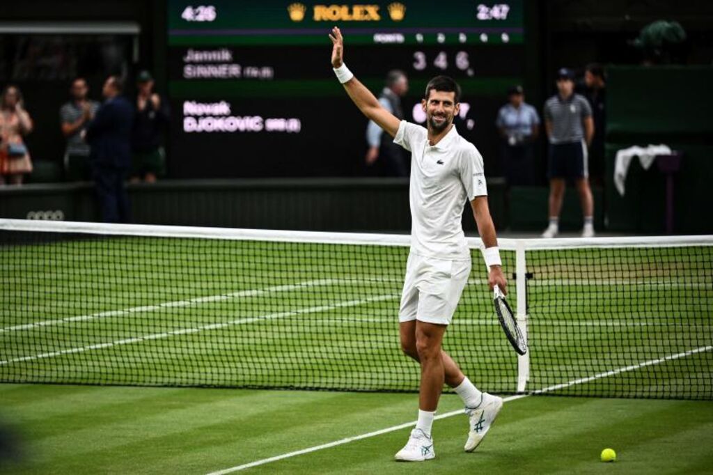 Vendredi 14 juillet en demi-finales, Djokovic a renvoyé à ses études le jeune Italien Jannik Sinner, 8e mondial à 21 ans, 6-3, 6-4, 7-6 (7/4), signant une 34e victoire d'affilée à Wimbledon où il est invaincu depuis sa défaite en quarts en 2017.