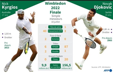 | Wimbledon 2022 finale messieurs : Kyrgios vs Djokovic. |