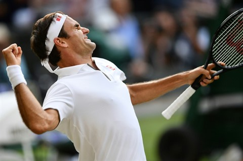 | Roger Federer après sa victoire en demi-finale de Wimbledon contre Rafael Nadal, le 12 juillet. |