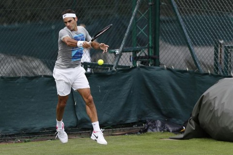 | Roger Federer à l'entraînement sur un terrain annexe de Wimbledon, le 1er juillet. |