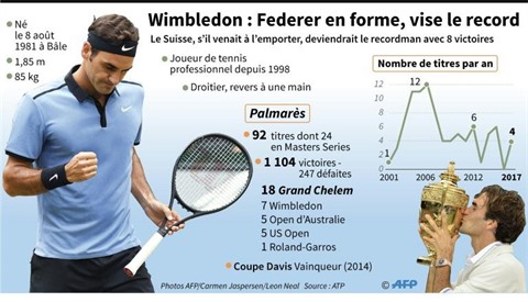 À bientôt 36 ans (le 8 août), l'inusable Federer a survolé le début de saison avec des titres à l'Open d'Australie, Indian Wells et Miami, avant de zapper les tournois sur terre battue pour se préserver pour le gazon.