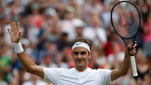 | Le Suisse Roger Federer après sa victoire face au Serbe Dusan Lajovic, le 6 juillet à Wimbledon. |
