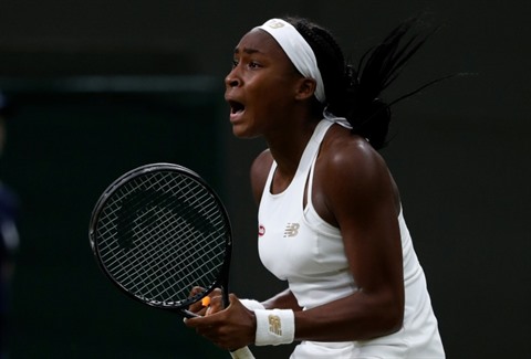 | La jeune Américaine Cori Gauff, victorieuse de la Slovaque Magdalena Rybarikova au 2e tour de Wimbledon, le 3 juillet à Londres. |