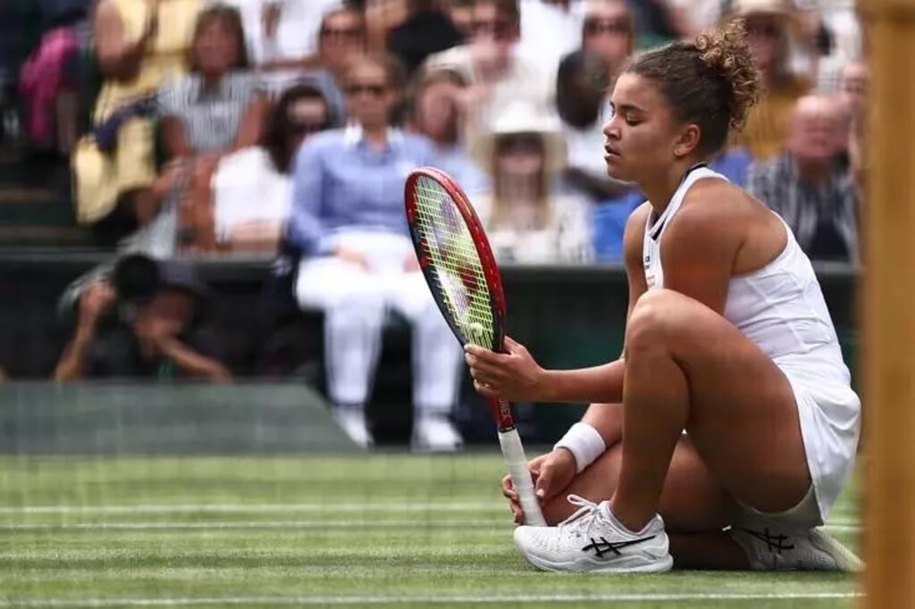 | Jasmine Paolini au bord de la rupture contre Donna Vekic en demi-finales de Wimbledon, le 11 juillet. |