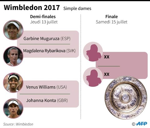 | Tableau des demi-finales du tournoi féminin de Wimbledon 2017. |
