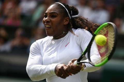 | L'Américaine Serena Williams contre la Russe Evgeniya Rodina en 8e de finale de Wimbledon, le 9 juillet. |